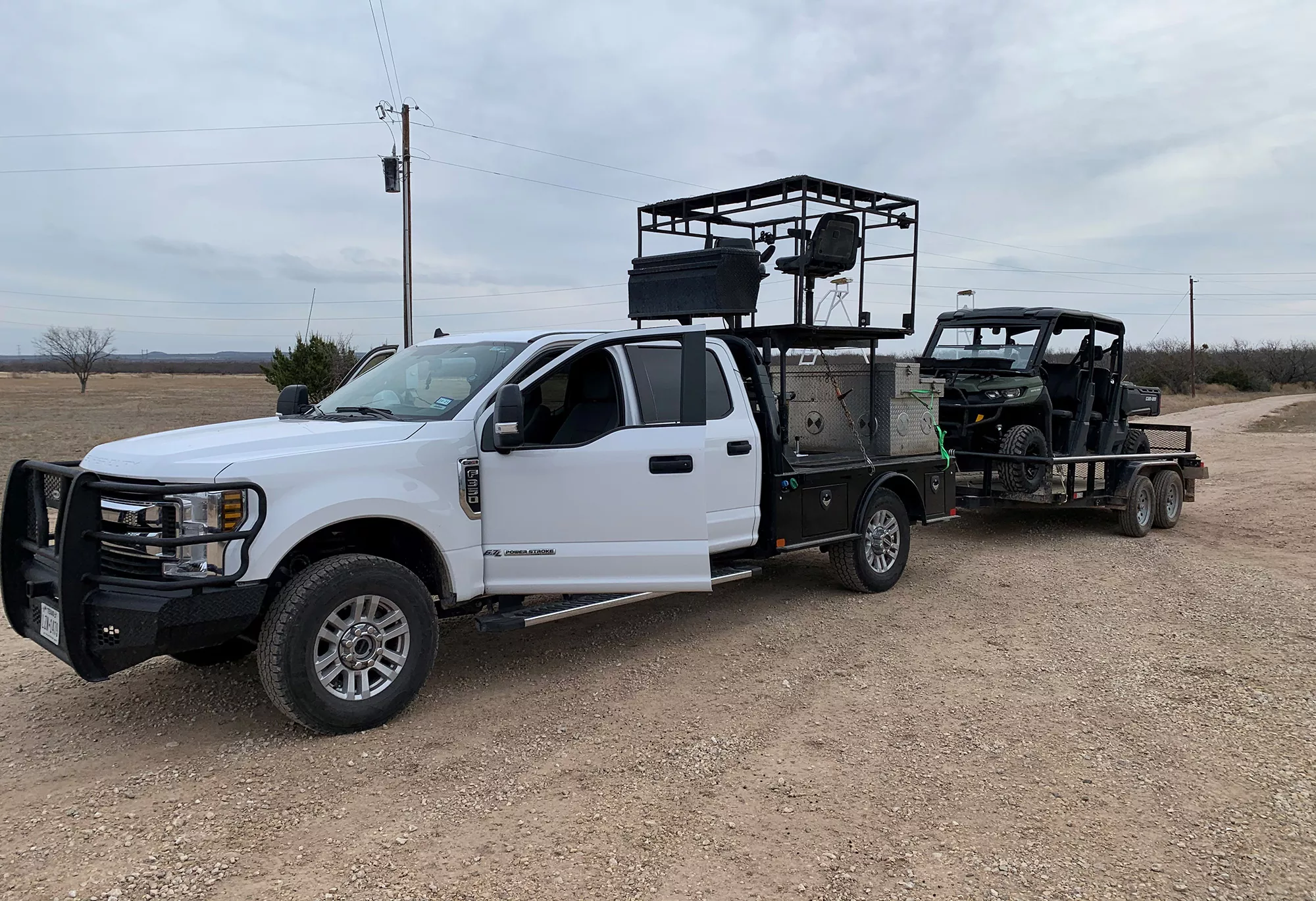 We sit high above the terrain in West Texas in our custom built high racks and spotlight using different animal sounds to call the predators up close and personal. Predator hunting is conducted primarily at night with the use of light force spotlights and Wildlife Technology Electric Calls.